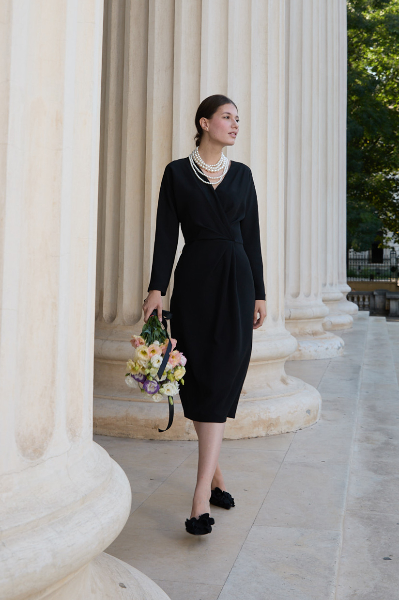 Rochie elegantă neagra cu fronseuri – rafinament și feminitate