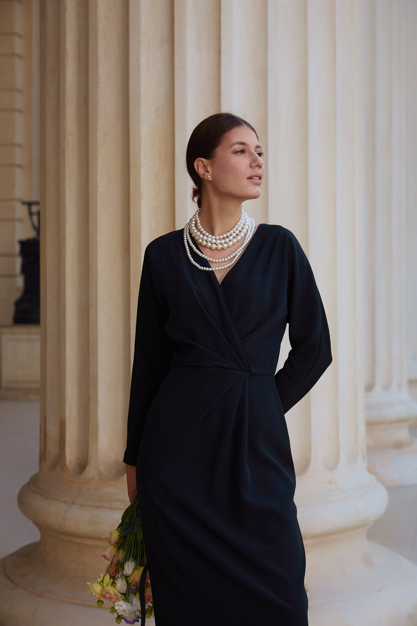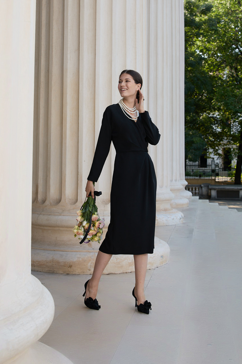 O rochie care îmbină eleganța clasică cu un accent modern, perfectă pentru femeia care își dorește să se remarce prin rafinament.