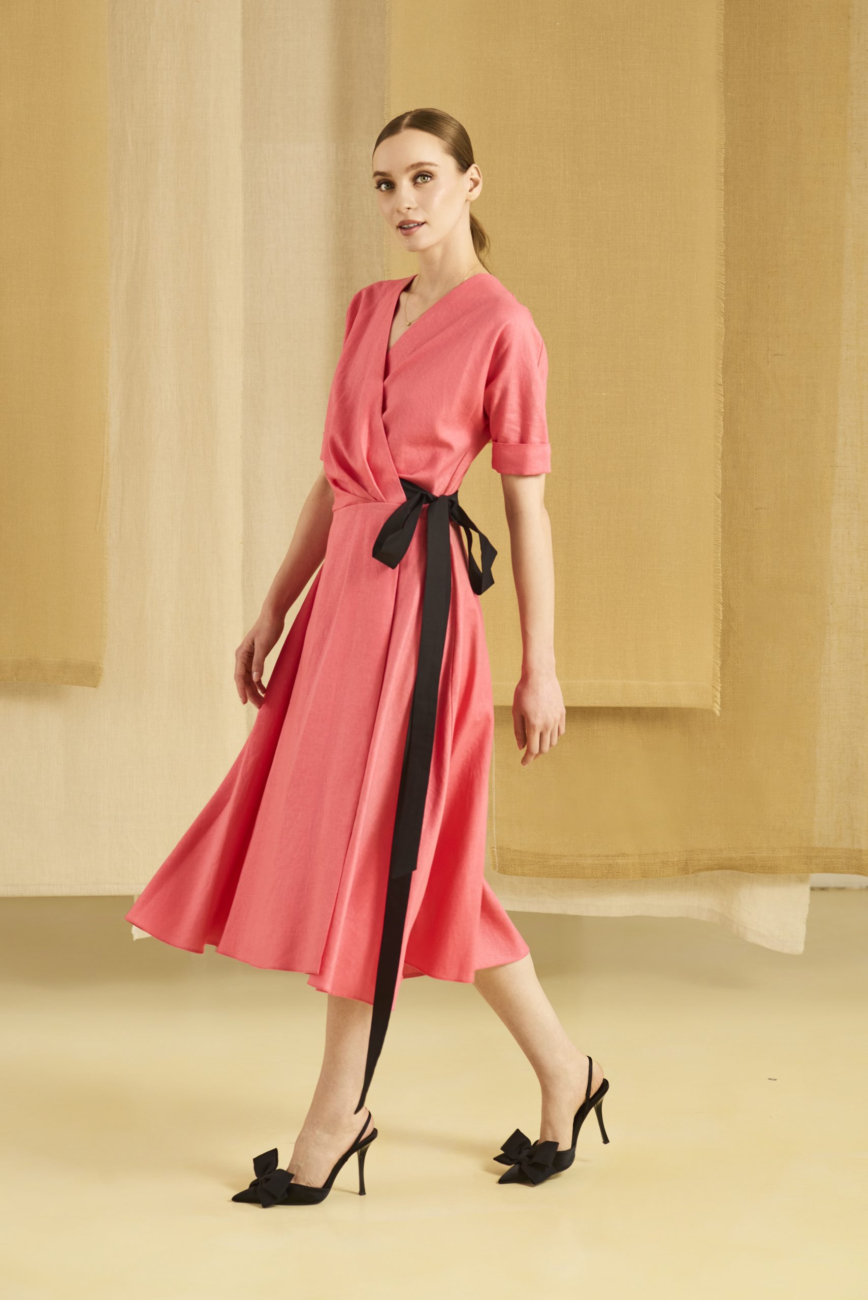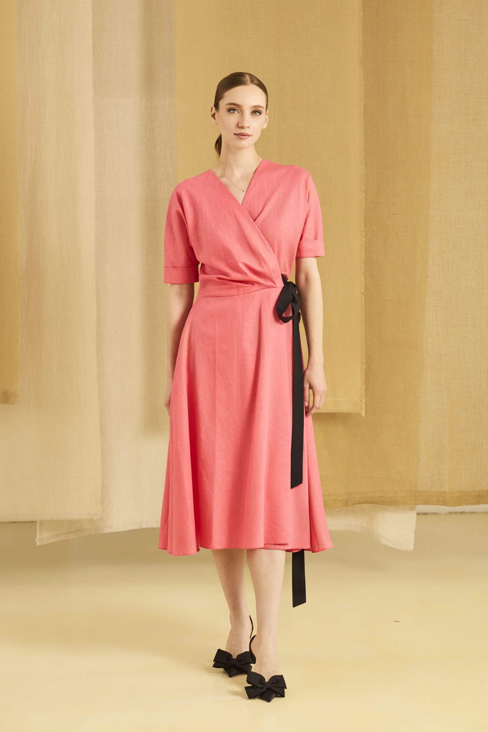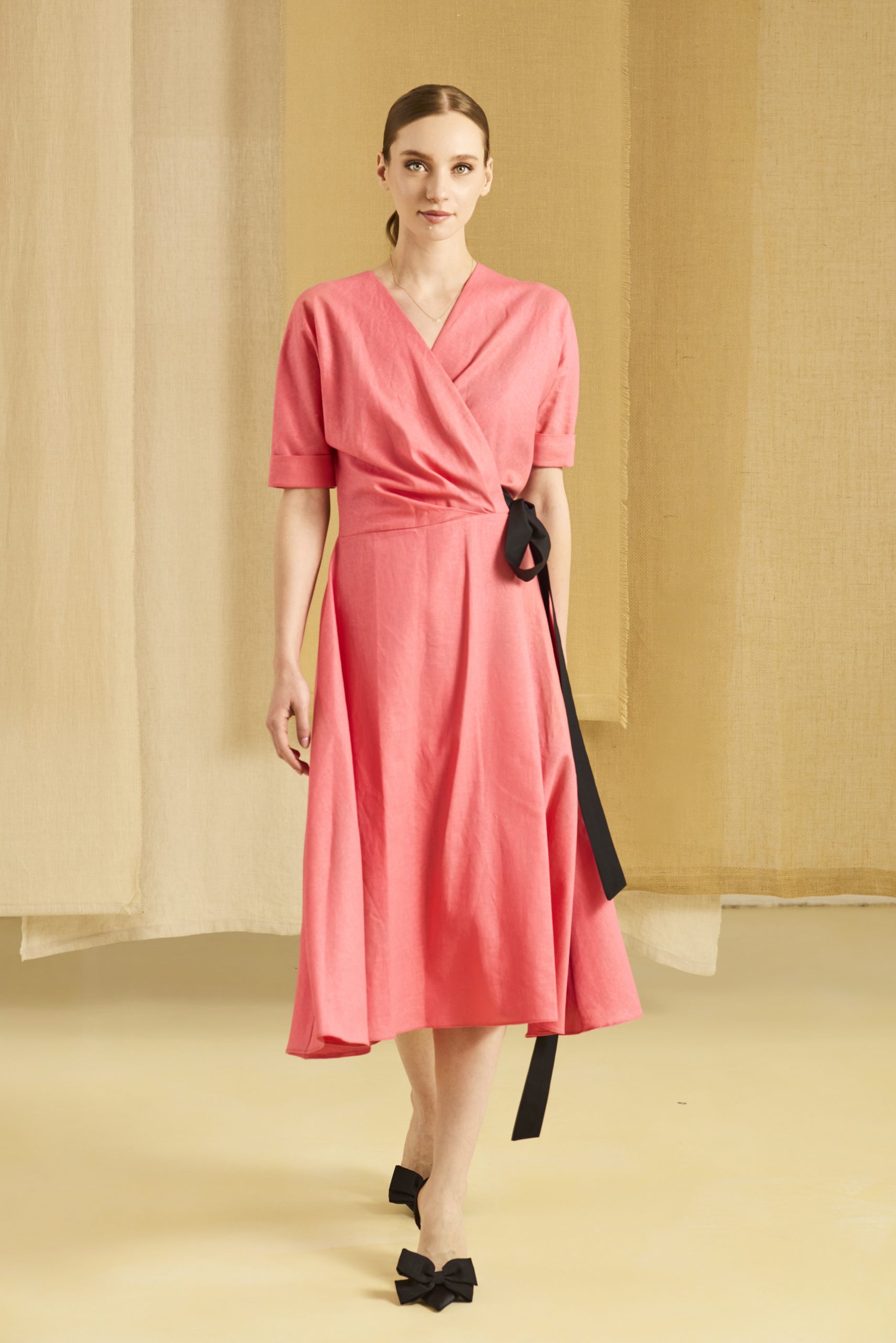 Lejeră, feminină și natural elegantă, rochia de zi petrecută din in este alegerea perfectă pentru sezonul cald. Croiala petrecută evidențiază delicat decolteul, iar fronseurile din zona bustului adaugă un plus de rafinament și subliniază armonios silueta.