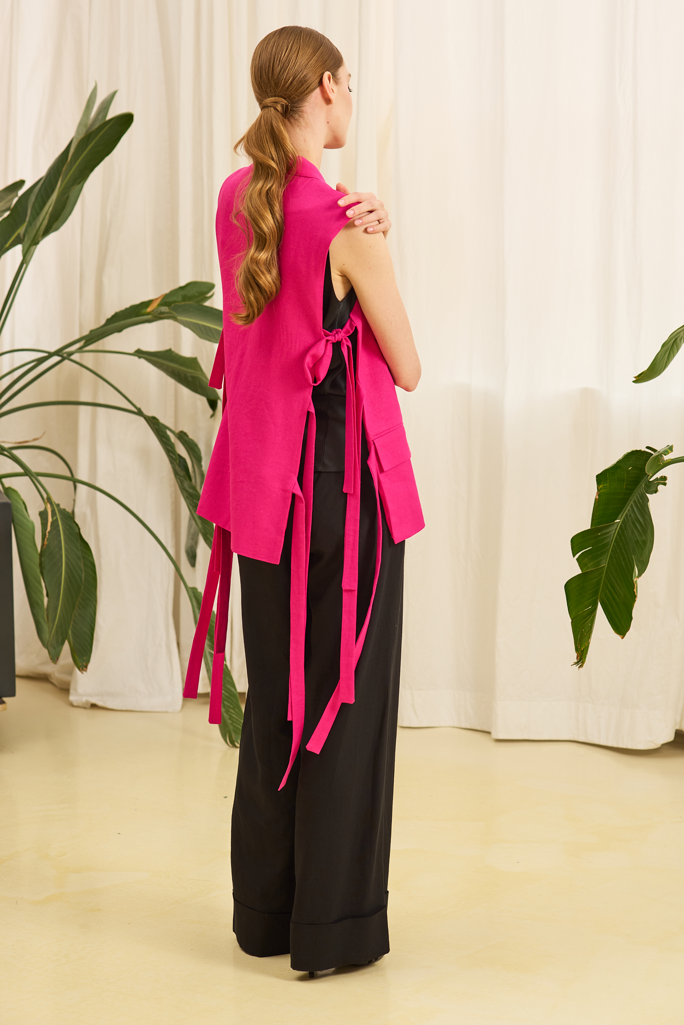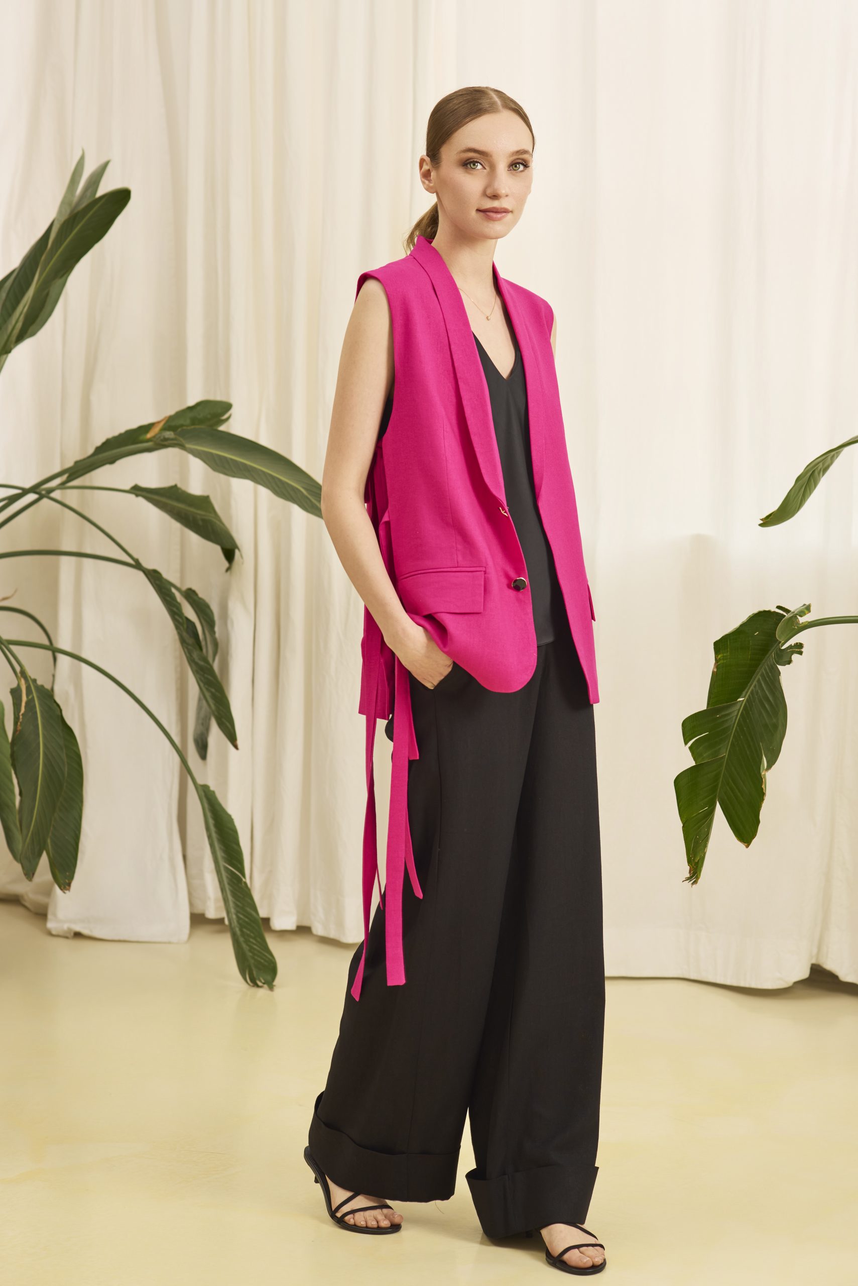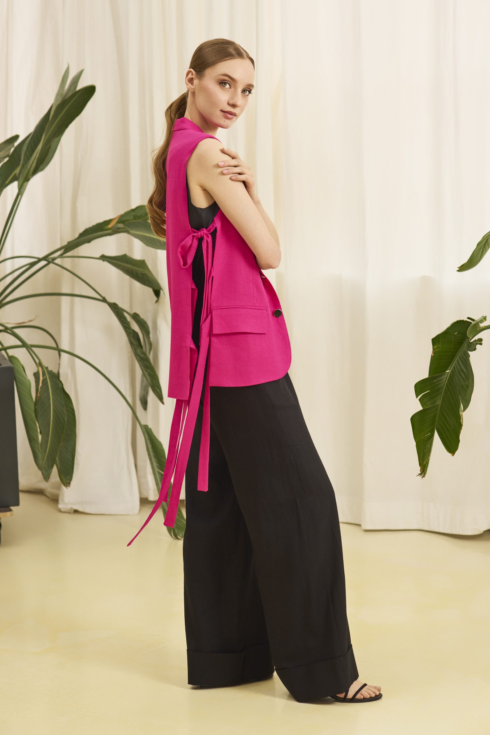 Vesta casual, confectionata di in fucsia . Vesta este captusita integral.